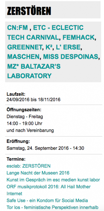 Ausgehend von der Annahme, dass man als Einzelperson wenig gegen dystopische Zustände und Entwicklungen ausrichten kann, sich aber immer wieder Kollektive, Gruppen, Kollaborationen bilden, um Partizipation, Einfluss und persönliche Souveränität (zurück) zu erobern, hat das esc medien kunst labor KünstlerInnen-Kollektive aus verschiedenen Disziplinen eingeladen, gemeinsam am Projekt ZERSTÖREN zu arbeiten.